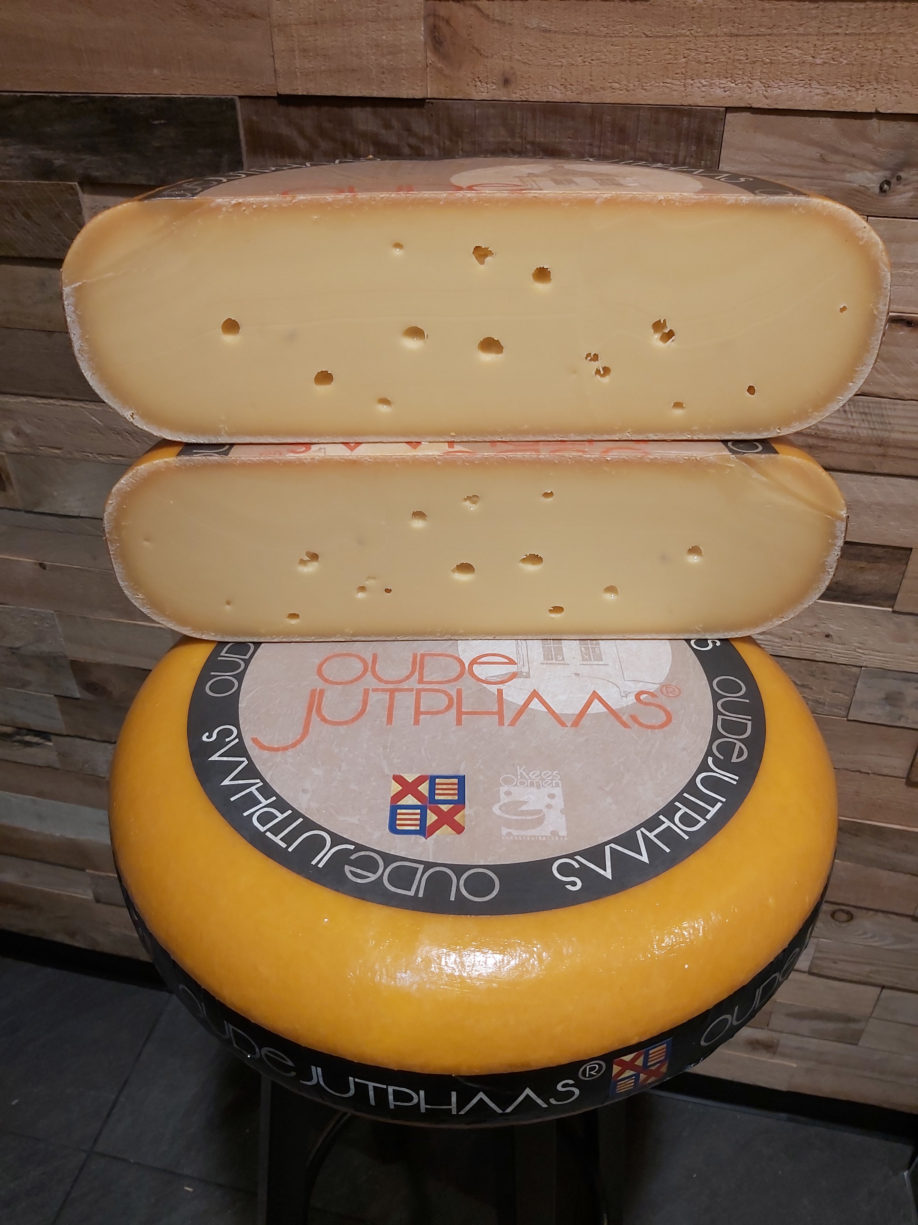 Oude Jutphaas Kaasstengels; in collegiale samenwerking met Bakkerij van der Grijn ontwikkeld knapperig kaaszoutje met onze eigen, winkelgerijpte, Oude Jutphaas kaas. Verlaagd zoutgehalte, dus meer kaassmaak.